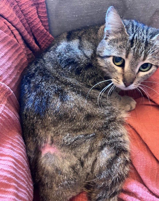In November, things got tricky. She developed a large abscess near her hip, which we treated twice a day with Betadine and antiseptic creams. Just as that began to heal, she got hit with a urinary tract infection—a common and serious risk for paraplegic cats. She went through a round of Borflox antibiotics. It worked, but the cost—both emotionally and financially—was real.