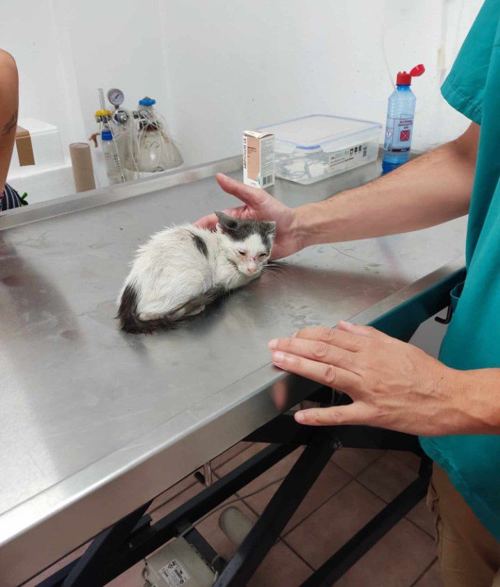 Necter came to us because someone cared enough to speak up. A woman from Athens, visiting family in Galatas, noticed a kitten and his mother struggling on the streets—sick, sneezing, and clearly fighting a nasty case of cat flu. She did what she could, giving them basic treatment while she was in town, but before heading back home, she reached out to us for help.